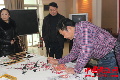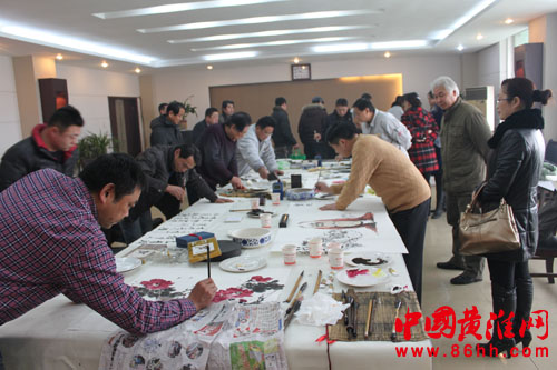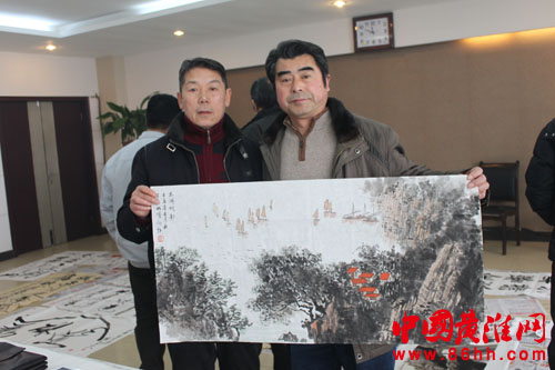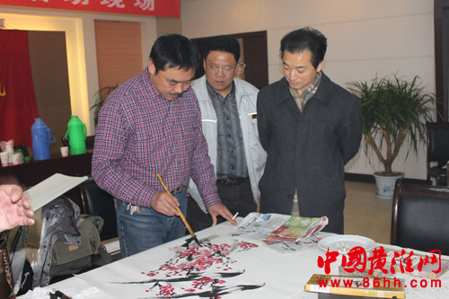 中國黃淮網(wǎng)訊(采編 溫鰲)2月1日,中國黃淮網(wǎng)黃淮書畫院、徐州市儲運(yùn)有限責(zé)任公司舉行了書畫交流活動。在春節(jié)來臨前夕為忙碌在物流事業(yè)的辛勤員工們,表達(dá)了書畫家們對他們的慰問、感激之情。