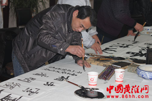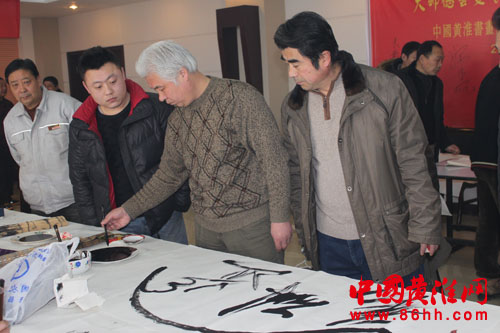 在隨后的活動中,書畫家們紛紛現(xiàn)場揮毫,本次活動共創(chuàng)作出諸多幅書畫精品。(黃淮網(wǎng)書畫頻道)