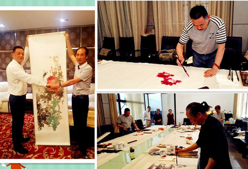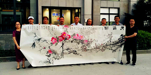 胡總對(duì)藝術(shù)家走進(jìn)基層表示由衷的欽佩。他說(shuō)畫家們接地氣會(huì)更好的激發(fā)作靈感,創(chuàng)作彰顯時(shí)代的感人作品。隨后,書畫家們揮毫潑墨,盡展才藝。當(dāng)各位書畫家精心創(chuàng)作的作品躍然紙上,栩栩如生時(shí),受到企業(yè)員工贊美夸獎(jiǎng),活動(dòng)現(xiàn)場(chǎng)氣氛熱烈。特別是書畫家合作的大幅《滿園春》作品展現(xiàn)在大家面前的時(shí)候,引起聲聲贊嘆和陣陣的掌聲。這批具有較高藝術(shù)水準(zhǔn)及收藏價(jià)值的作品,均贈(zèng)送給該企業(yè)留存。