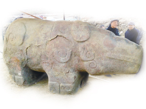 李冰“石犀”? 昨日,考古專家在看了“石獸”圖片后,又有提出“石獸”與李冰治水所用“石犀”有關(guān)。傳說在修建都江堰時(shí),李冰下令雕刻5只石犀,置于成都和灌縣江中。這5只石犀實(shí)際上是水則,同時(shí)又是鎮(zhèn)水石神。
