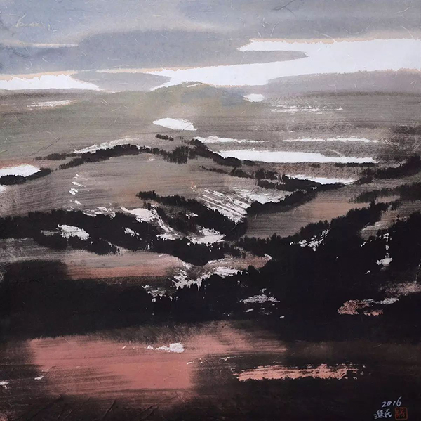 《天地之間》系列中——畫家顯然在局部色彩的過渡中加入了自己內心的體驗和認知并進行了重新過濾,從而使白、灰、藍、黑等色彩形成互相和諧的畫面關系,既不存在孤立的色塊,也沒有失去中國畫的人文情懷,而是利用畫面肌理著重體現有激情有動感有燃燒點的視覺感,是典型的表現主義寫實。其中的宇宙觀和哲學觀也多有體現,表現出了一個藝術家應有的思考與追求。