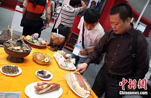 內(nèi)容摘要:在2012中國湖南(第三屆)旅游產(chǎn)業(yè)博覽會(huì)上,一位觀展者被以假亂真的“滿漢全席”奇石宴吸引,不禁用手指觸摸一片“生豬肉”,以辨別真假。