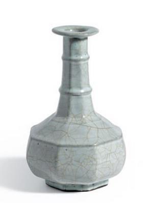2015年4月7日,在香港蘇富比2015年春拍“凝青絮金——日本珍藏官窯八方瓶”專場,劉益謙通過電話委托,以1.1388億港元競得南宋時期官窯青釉八方旋紋盤口瓶。