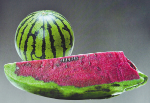 買下石頭后,我立即找到行家,開、磨、雕刻、拋光,十幾日后,再看我的這塊石頭,那哪還是什么石頭,簡直就是一塊剛剛切下來的大西瓜:紅汁欲滴的瓜瓤,晶瑩碧綠的瓜皮,幾粒半隱半露的褐色西瓜籽自然地分布在瓜瓤中,瓤的頂端還有一排錯(cuò)落有致的黑色西瓜籽;瓜皮上兩條似有似無的黑線,被巧妙地雕成了西瓜的紋路,看上去更形象、更逼真。當(dāng)下就有人開價(jià)5萬元購買。奈何,我已愛不釋手,怎么舍得賣出呢!