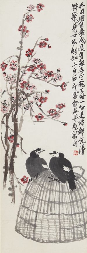 齊白石 《紅梅雙鳥圖》 設(shè)色紙本 立軸 97.5×33cm 估價(jià):RMB3,000,000-5,000,000