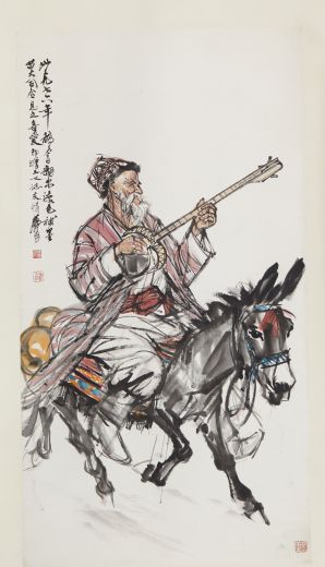 黃胄《日夜想念毛主席》立軸 設(shè)色紙本167×95cm1976年作RMB6,800,000-9,800,000
