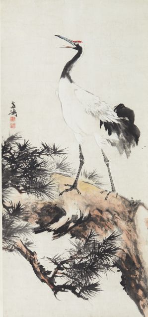 王雪濤《松鶴長(zhǎng)春》鏡片 設(shè)色紙本150×70cm RMB800,000-1,200,000