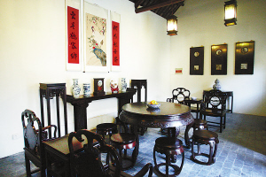 根據(jù)一般常理,古代建筑的主人房間一定是在整體建筑的最隱蔽、最深處,進入主院落,首先看到的絕不會是主人的房間,應該就是迎接客人,比較開放的場所了,即客廳。為了和古民居建筑特色相協(xié)調(diào),在修繕鄭家大院時,增設了明清時期的古家具及各種陳列藝術品,借著這些精美家具的襯托,使這些原本空曠高大的建筑群有了生活的氣息,使我們仿佛感覺自己是到鄭家來做客。