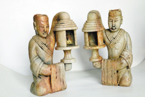 這是一對(duì)呈跪臥狀、手執(zhí)長(zhǎng)命宮燈的戰(zhàn)國(guó)“玉人”。從形象看,應(yīng)為男性形象,身著寬袍長(zhǎng)袖,腦后束髻,一人左手執(zhí)燈,一人右手執(zhí)燈。面目刻畫極簡(jiǎn),卻也栩栩如生。