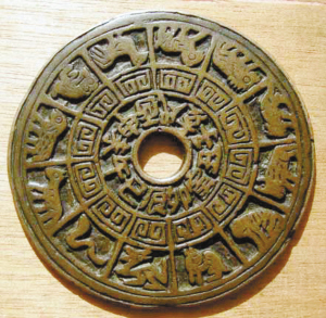 花錢正面雕刻有祥瑞圖文,最上方為“加官進(jìn)爵”四字,刻字深峻,字體樸拙。圖案主圖是一只昂首向上、四足蹲地的梅花鹿,鹿的背墊內(nèi)有一只瞪著圓眼的小金猴。鹿的右側(cè),是一只龜蛇結(jié)合的動物,應(yīng)是神話中的瑞獸玄武。鹿的四方,除有草葉紋外,還有銀錠、笏板等飾物;ㄥX的背面圓孔正中依次為子、丑、寅、卯等地支十二字,相隔紋飾下的小方框內(nèi),分別對應(yīng)著鼠、牛、虎、兔等十二生肖圖案。花錢正背面物象皆栩栩如生,場景生動逼真,造錢匠人的高超技藝溢于幣面。