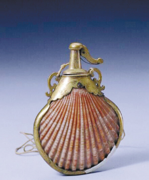 清王朝以弓馬得天下,皇帝每年都會(huì)到圍場(chǎng)射獵,以示不忘祖宗家法,所以清代皇帝對(duì)使用火槍都很熟諳。內(nèi)務(wù)府造辦處也因此制造了大量的火藥袋,作為宮廷的專用物品。造辦處在制作工藝上,也揉入了不少西方元素,器形既有東方典雅,又有西式韻味。如用皮革做成扇貝狀的革囊,口部則是西式的銅按鈕,可蓋緊及控制傾倒的藥量;蛘甙颜麄(gè)牛角鏤空,外面雕刻及鑲嵌各種紋飾,炫示皇家的豪闊排場(chǎng),以奇思巧作的藝術(shù)裝飾效果,彰顯細(xì)節(jié)趣味。