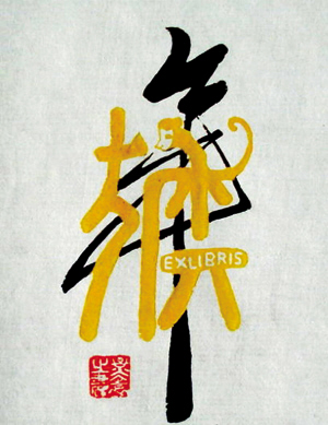 王嶸的猴年藏書(shū)票。該藏書(shū)票以石刻手法,以畫(huà)入書(shū),在“猴”字上站立著一只機(jī)靈可愛(ài)的猴子。作者王嶸系上海著名藏書(shū)票藝術(shù)家,創(chuàng)作書(shū)法藏書(shū)票是王嶸的專長(zhǎng)。