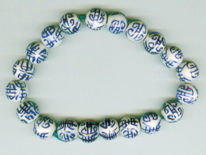 去年年底得到一串瓷珠,每顆直徑都在1厘米左右,青花瓷質(zhì)地。