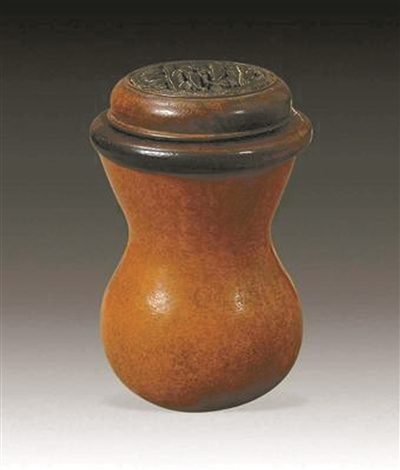 鳴蟲葫蘆的造型,最常見的是“雞心”和“奶瓶”。雞心罐的底部呈尖形,狀似雞心;奶瓶為平底束腰,狀似小兒用的奶瓶。這兩種造型的葫蘆,不僅外形樸拙典雅,也具有良好的共鳴效果,能讓鳴蟲的叫聲更為明亮清脆。葫蘆的表面,除了有范制的圖案,還有采用圓弧形的工具在葫蘆表面碾壓出的砑花,以及用火筆烙燙、雕刻出的立體紋飾。不同寓意的圖紋,既豐富了鳴蟲葫蘆的文化內(nèi)涵,也令蟲罐的觀感更為圓潤,線條更具韻味。