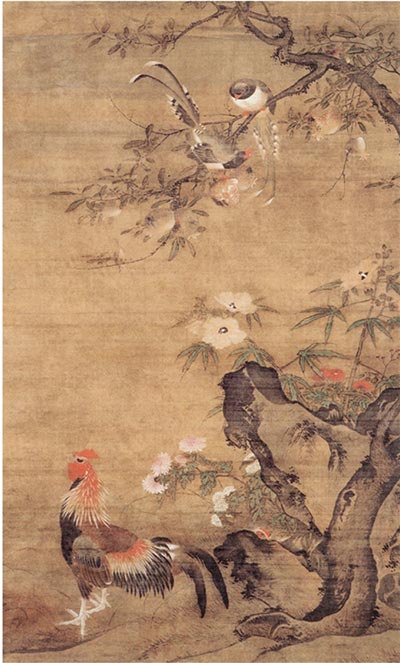 明 呂紀(jì) 榴葵綬雞圖 200.8×105cm 絹本