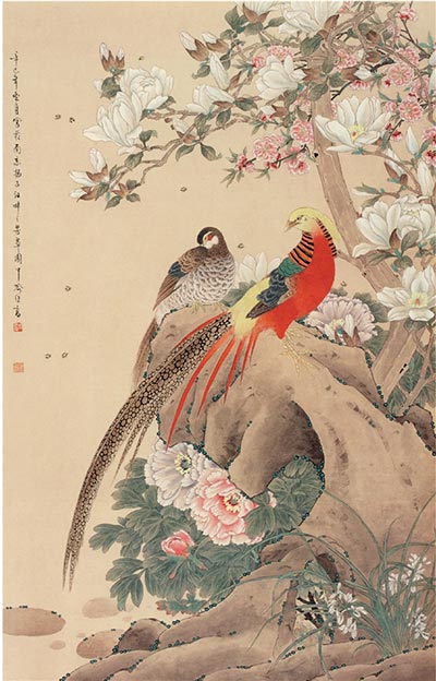 現(xiàn)代 喻繼高 玉蘭錦雞 146×83cm 2001年 紙本