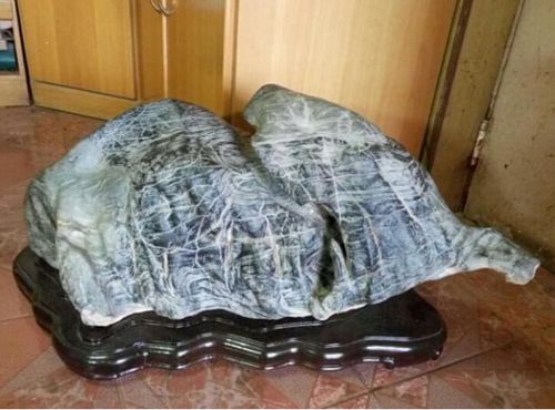 象,瑞獸,厚重穩(wěn)行,故有“太平有象”、“喜象升平”之說(shuō),寓意河清海晏、民康物阜。陸游曾賦詩(shī)曰:“太平有象天人識(shí),南陌東阡搗麥香”,象已然成為吉祥、喜慶的祥瑞象征。在神話傳說(shuō)中,大象則為搖光之星生成,能兆靈瑞,古佛就是乘象從天而降;還有一說(shuō),大象是普賢菩薩的坐騎,相傳能預(yù)兆靈瑞。該石仿佛將神話傳說(shuō)變?yōu)榱爽F(xiàn)實(shí),仿佛古佛乘象從天而降。