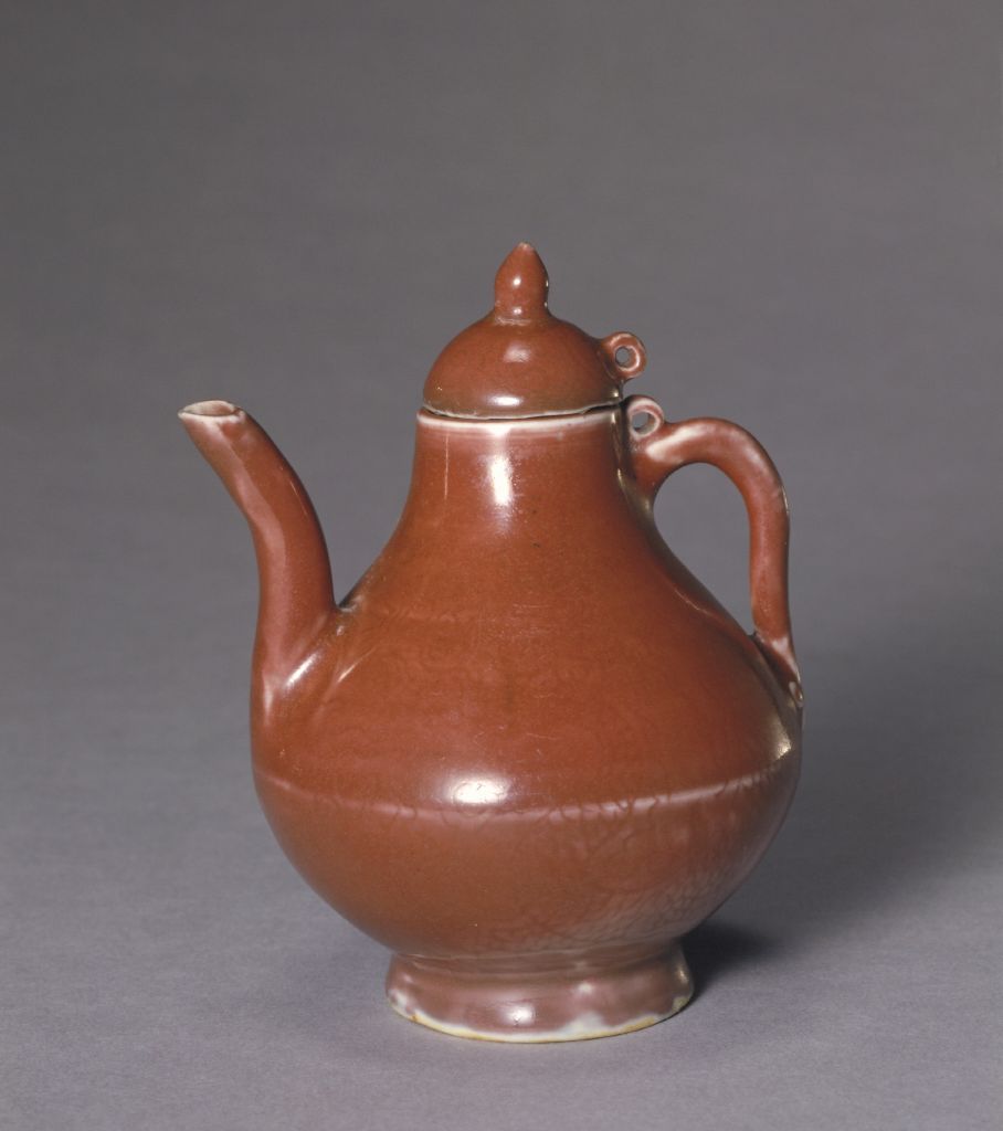 此壺釉面勻凈,釉色鮮艷,是元代紅釉器中的珍品。壺身的龍紋細(xì)頸長(zhǎng)嘴,形態(tài)生動(dòng),具有鮮明的時(shí)代特征。
