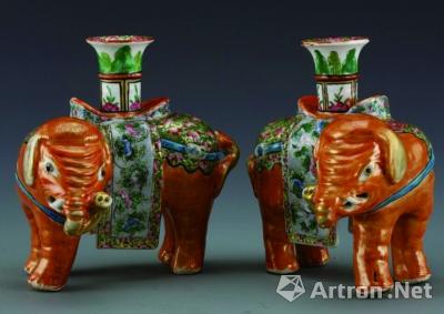 廣彩花卉紋太平有象燭臺 清`光緒 廣東省博物館藏