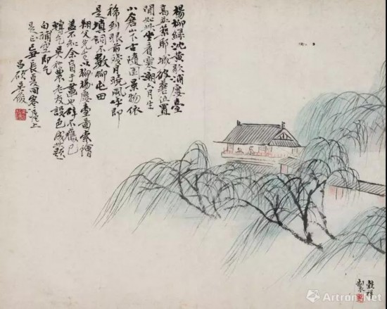 楊柳樓臺(tái)圖(國畫) 吳轂祥 吳昌碩題