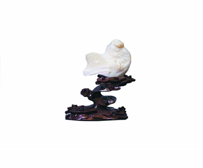功夫不負(fù)有心人,經(jīng)過一次次的沙漠歷險,張東林終于覓到一塊“和平鴿”。這塊樓蘭漠玉質(zhì)地的戈壁石,歷經(jīng)雅丹地貌環(huán)境下的海底火山噴發(fā)與大漠地區(qū)億萬年風(fēng)沙磨礪而成。其質(zhì)感光潔,晶瑩剔透,類似和田白玉。有的部分則呈白色不透明狀。雖只有巴掌大小,但無論是造型還是材質(zhì)都堪稱極品。從正面看去,如同一只曲項昂首、振翅欲飛的和平鴿,惟妙惟肖。而背面則像一尊慈眉善目的臥佛,看罷直叫人不由驚嘆造物之神奇。