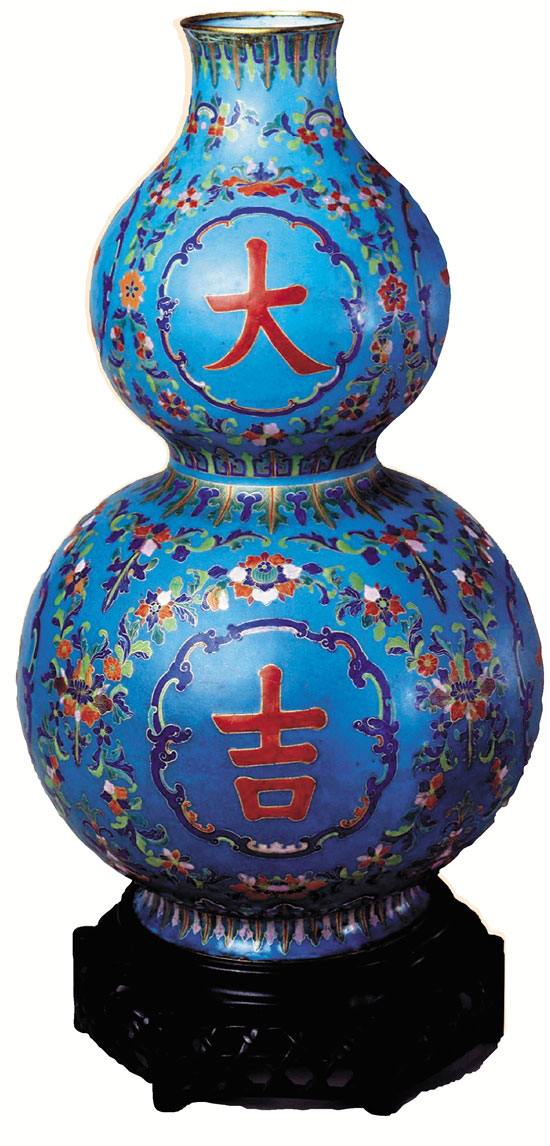 清 畫琺瑯大吉葫蘆瓶 口徑7.5cm 底徑13.1cm 高39cm