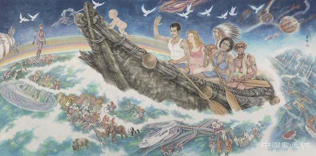 《同舟共濟(jì),榮辱與共》 作者:廖勤 創(chuàng)作年代:2019 規(guī)格:300cmx600cm 品類:國畫