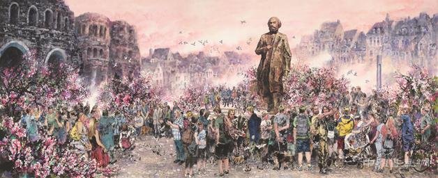 《霞映特里爾——馬克思故鄉(xiāng)》  作者:蕭瀚 創(chuàng)作年代:2019 規(guī)格:14cmx360cm 品類:國畫