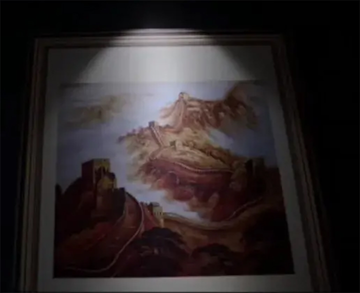 在樓梯口處,您將看到北鴻先生的寫實風景油畫代表作《金巨龍》。這幅作品以其磅礴的氣勢和精湛的技藝贏得了廣泛的贊譽。