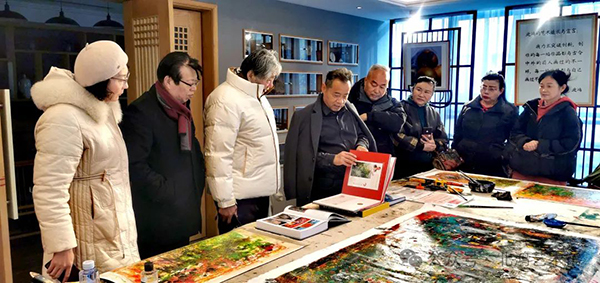 考察過程中,他們對(duì)北鴻先生的油畫作品進(jìn)行了全方位、深入且細(xì)致的了解,深深折服于其獨(dú)特的創(chuàng)作理念與極高的藝術(shù)價(jià)值。北鴻在油畫藝術(shù)領(lǐng)域獨(dú)樹一幟,傲立潮頭,且在道家文化的傳承方面有著深厚的底蘊(yùn),還能別出心裁地將毛澤東思想融入商戰(zhàn)實(shí)戰(zhàn)經(jīng)驗(yàn)中,并收獲優(yōu)異成績,這些都讓懷莊酒業(yè)集團(tuán)的考察團(tuán)成員們贊嘆不已、青睞有加。發(fā)出橄欖枝,然而,面對(duì)這樣的邀請(qǐng),就如同面對(duì)此前諸多類似情況一樣,北鴻始終不為所動(dòng),堅(jiān)守著自己純粹的藝術(shù)初心,一心只想通過藝術(shù)融合品牌等契合藝術(shù)發(fā)展的方式,高高舉起中國文藝復(fù)興的偉大旗幟,繼續(xù)在傳承中國油畫的道路上篤定前行,致力于讓中國油畫在世界藝術(shù)的廣袤森林中綻放出更為絢爛奪目的光彩。( 攝影/李明躍 王上元)