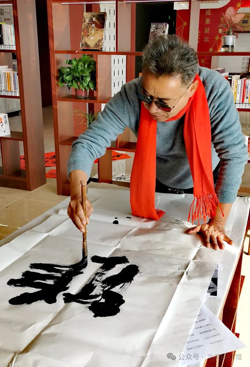 這“境界”二字,不僅僅是兩個(gè)簡(jiǎn)單的漢字,更是北鴻內(nèi)心境界在紙墨間的映射。墨韻所至,心境即現(xiàn)。每一筆都蘊(yùn)含著北鴻對(duì)書法藝術(shù)的深刻領(lǐng)悟,每一個(gè)字都仿佛在訴說著北鴻在書法之路上攀登高峰的艱辛與執(zhí)著。透過這幅作品,我們仿佛能看到北鴻在書案前揮毫潑墨的情景,感受到他對(duì)書法藝術(shù)那種近乎癡迷的熱愛。在這簡(jiǎn)單的兩個(gè)字中,北鴻用墨韻繪出了自己的心境,也為我們呈現(xiàn)了書法藝術(shù)中那令人神往的境界。(攝影:李明躍)