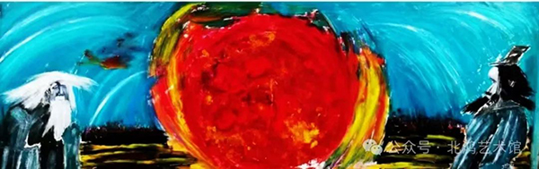 北鴻的超印象藝術(shù)表現(xiàn)力在這幅作品中展現(xiàn)得淋漓盡致。他摒棄了傳統(tǒng)繪畫的寫實(shí)手法,以大膽的色彩運(yùn)用、奔放的筆觸和獨(dú)特的構(gòu)圖,賦予了作品強(qiáng)烈的視覺沖擊力和藝術(shù)感染力。這種超印象的風(fēng)格,不僅僅是對(duì)現(xiàn)實(shí)的再現(xiàn),更是藝術(shù)家內(nèi)心世界的表達(dá)和對(duì)傳統(tǒng)文化的深刻解讀。通過這種獨(dú)特的藝術(shù)語言,北鴻讓老子與孔子的思想從古老的典籍中走出來,以一種全新的、生動(dòng)的方式展現(xiàn)在世人面前,引發(fā)人們對(duì)人生、對(duì)社會(huì)、對(duì)宇宙的思考與感悟。值得一提的是,北鴻的這幅作品已經(jīng)被收入《世界美術(shù)教育史》,這無疑是對(duì)其藝術(shù)價(jià)值和影響力的高度認(rèn)可,也彰顯了這幅作品在世界藝術(shù)領(lǐng)域的重要地位。