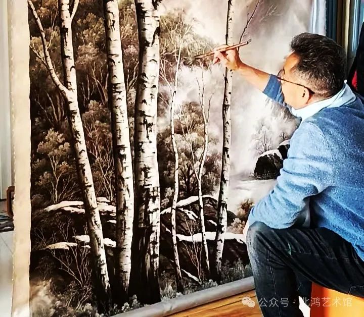 在當(dāng)代中國藝術(shù)的璀璨星空中,北鴻無疑是一顆極為耀眼的星。他的油畫作品《雪白樺》,以其獨(dú)特的藝術(shù)魅力與深邃的思想內(nèi)涵,奏響了自然詩性與超寫實(shí)美學(xué)的華美樂章,不僅成為其藝術(shù)生涯中的一座不朽豐碑,更在收藏界引發(fā)廣泛關(guān)注與熱烈追捧。