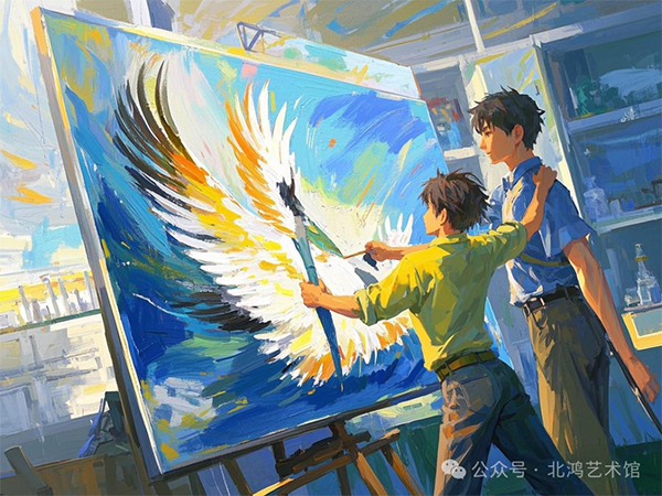 這種創(chuàng)作方式被評論家稱為“用油彩演奏的編鐘樂章”,形象地描繪了北鴻作品中東西方文化元素相互交織、碰撞的獨特魅力。然而,這種創(chuàng)新的創(chuàng)作方式也引來了一些爭議,傳統(tǒng)派教授們對此瞠目結(jié)舌,質(zhì)疑這到底是對傳統(tǒng)藝術(shù)的破壞,還是一種全新的創(chuàng)造。