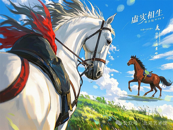 北鴻的藝術(shù)革命,始于對傳統(tǒng)寫實(shí)油畫的大膽突破。他巧妙地將徐悲鴻的馬術(shù)寫實(shí)與道家哲學(xué)的“虛實(shí)相生”理念相結(jié)合,創(chuàng)造出了“超寫實(shí)畫馬”這一獨(dú)特的藝術(shù)范式。