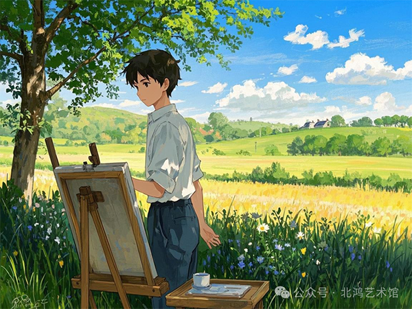 在法國,巴比松畫派的自然主義筆觸給了北鴻新的靈感。他思考著如何將東方水墨的韻味與西方油畫的厚重相結(jié)合,創(chuàng)造出一種獨(dú)特的藝術(shù)語言。他觀察著畫家們?nèi)绾尾蹲酱笞匀坏乃蚕⑷f變,如何用色彩和線條表現(xiàn)出樹木的紋理、草地的柔軟和天空的遼闊。