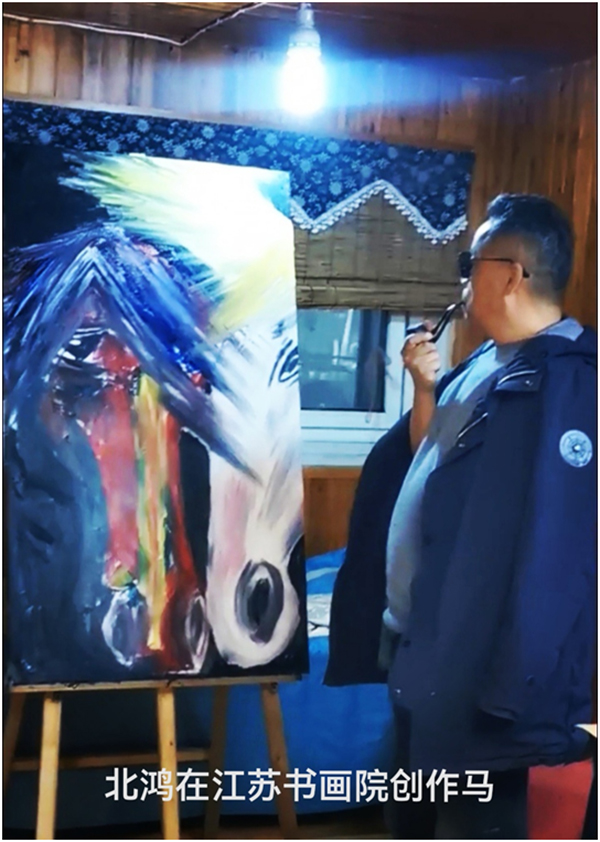 北鴻在江蘇書畫院創(chuàng)作超印象詩畫《雙駿圖》120cmX80cm