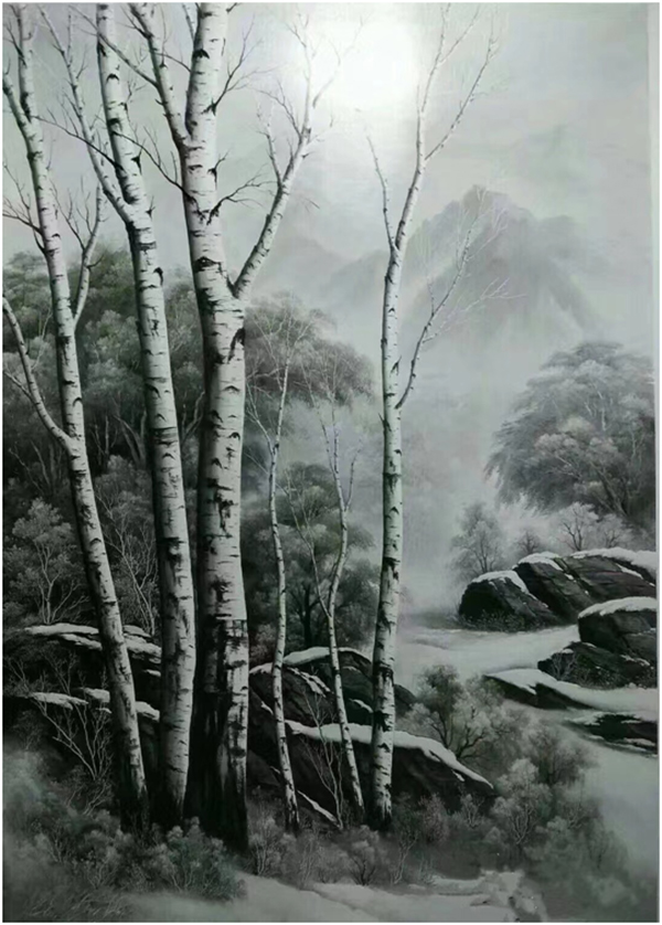 北鴻超寫實(shí)《雪白樺》200cmX120cm