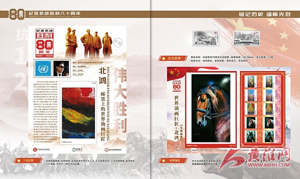 此次發(fā)行的主題郵冊,巧妙地將北鴻的藝術(shù)世界,置入中國人民抗日戰(zhàn)爭暨世界反法西斯戰(zhàn)爭勝利八十周年的宏大歷史敘事中。