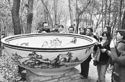 近日,一只耗時一個月制作、直徑達兩米的大茶碗,在椏溪鎮(zhèn)石墻圍村的大竹園亮相,吸引了不少游客。據(jù)悉,大竹園是古時南京通往安徽官道上的歇腳處,來往的路人借此喝茶休息,當?shù)夭栉幕蓙硪丫谩#ǜ邥云?吳彬)