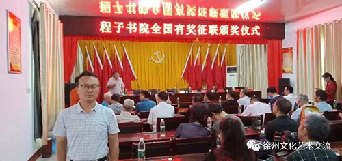 12018413日,由徐州市文化藝術(shù)交流協(xié)會、徐州市楹聯(lián)家協(xié)會、江蘇豐縣程子書院聯(lián)合發(fā)起程子書院全國征聯(lián)活動,至2018630日,組委會共收到楹聯(lián)作品186副。終評評出二等獎3個、三等獎6個、優(yōu)秀獎12個(一等獎空缺)。發(fā)獎儀式于81日在豐縣梁寨鎮(zhèn)隆重舉行。