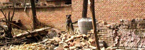 聽到生人的動靜,空蕩蕩的小巷里突然竄出幾條狗,邊跑邊叫,令人想起陶淵明《歸田園居》里的詩句:“狗吠深巷中,雞鳴桑樹顛”。