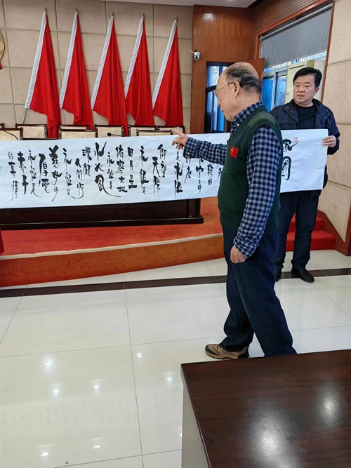 去年回鄉(xiāng)時,受到柳小現(xiàn)任校長楊宏老師的熱情接待,禁不往一股作氣將心中淘淘的愛付諸筆端,流淌到一幅六米的書法長卷之上,送給“柳小”的師生們: