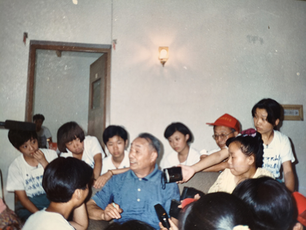 為紀念抗戰(zhàn)勝利50周年,1995年7月8日,40多名小記者南下開展為期六天的“尋訪抗戰(zhàn)足跡”夏令營活動,小記者車輪滾滾跨長江,直奔江南名城蘇州,小記者們風塵仆仆忘記了吃中午飯,來到蘇州青少年活動中心,在領(lǐng)導的安排下開始了緊張的采訪。在會議室里坐著兩位抗戰(zhàn)英雄,一位是抗戰(zhàn)電影《鐵道游擊隊》大隊長劉洪的原型人物劉金山,另一位是新四軍老戰(zhàn)士、陳毅元帥的胞妹王少艾。
