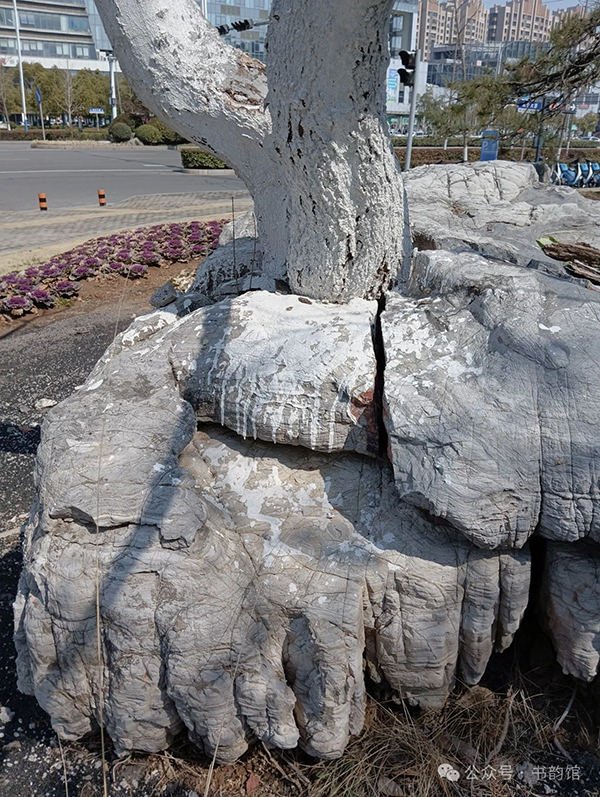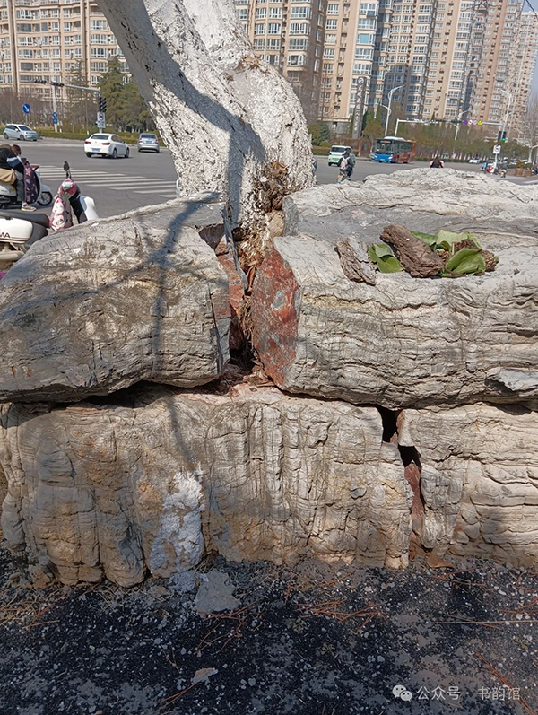 在徐州市新城區(qū)昆侖大道和新元路交界的西北角路口處,有一塊長約兩米五、寬約兩米巨石,巨石中間居然生長著一棵樹,堅(jiān)硬的巨石被撐裂四五厘米寬,這真是生命的奇跡!