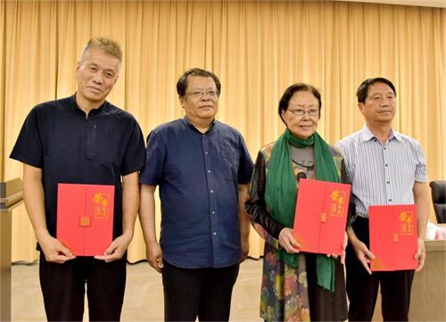 煙臺(tái)市文聯(lián)黨組成員、副主席張紹文,為著名藝術(shù)家斯琴高娃,鄭子,孫延?xùn)|頒發(fā)協(xié)會(huì)名譽(yù)主席聘書