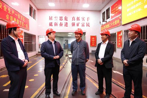 (上圖為龍煤雞西礦業(yè)公司黨委書記、董事長劉賢君(左2)向深入煤礦進(jìn)行調(diào)研活動的原中央電視臺臺長趙化勇(右3)一行介紹煤礦發(fā)展歷程)