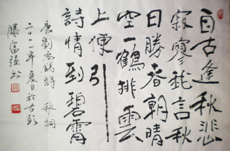 | 滕富強(qiáng),男,1948年9月30日生于徐州,祖籍河北省武邑縣。現(xiàn)任人民日?qǐng)?bào)社市場(chǎng)報(bào)網(wǎng)絡(luò)版中國(guó)黃淮網(wǎng)采編部主任、世界華人書(shū)畫(huà)家協(xié)會(huì)江蘇分會(huì)副主席、中國(guó)將軍部長(zhǎng)書(shū)畫(huà)院彭城分院副院長(zhǎng)、三蘇畫(huà)院藝術(shù)總策劃、槐香齋書(shū)畫(huà)院藝術(shù)顧問(wèn)、中國(guó)神劍文學(xué)藝術(shù)學(xué)會(huì)會(huì)員。