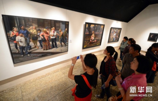 9月14日,“美國當(dāng)代寫實(shí)油畫展”中國聯(lián)展北京首展在中華世紀(jì)壇開幕。新華網(wǎng)圖片 李曉果 攝