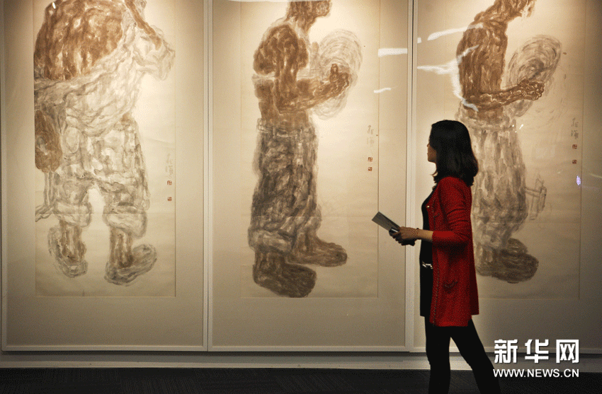 10月9日,由保利藝術(shù)博物館主辦的“晁海水墨世界”藝術(shù)展在北京舉行。展覽展出畫家晁海從2000年至今的51件水墨畫作品。晁海的水墨畫作品加強(qiáng)了墨和筆的內(nèi)在手法,反復(fù)多次的積墨而滲入紙背,積累出虛幻而強(qiáng)烈的雕塑感和歷史感,創(chuàng)造出獨(dú)具特色的當(dāng)代藝術(shù)語言。新華網(wǎng)圖片 萬象 攝